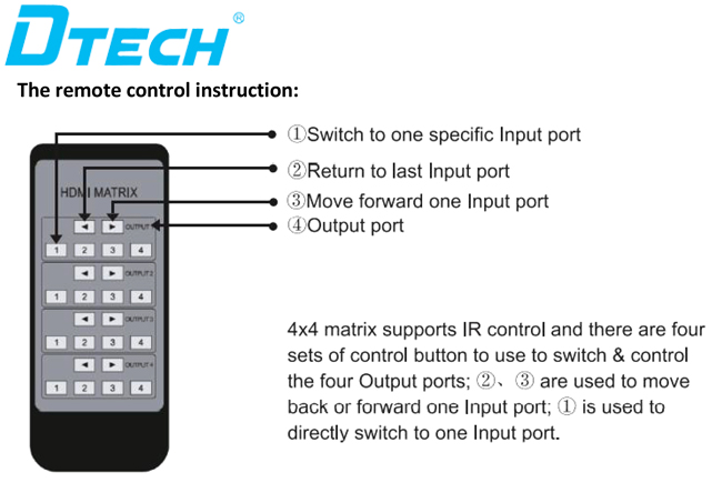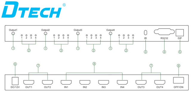 Tìm Nhanh Sản PhẩmBộ chuyển cổng HDMI 4 vào 4 ra 4K Dtech DT-7030![]()